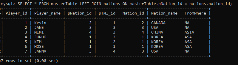여기서 조인할거라는건 위에선 MasterTable.pNation_id = Nations.Nation_id 이런걸 말합니다.