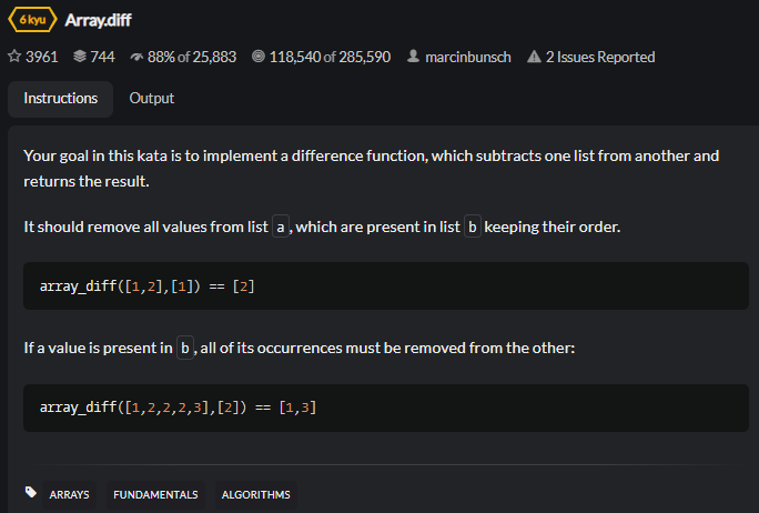 랭크업 이라는 단계가 있길래 눌러봤더니 6 kyu 문제가 나왔다.