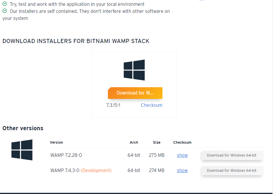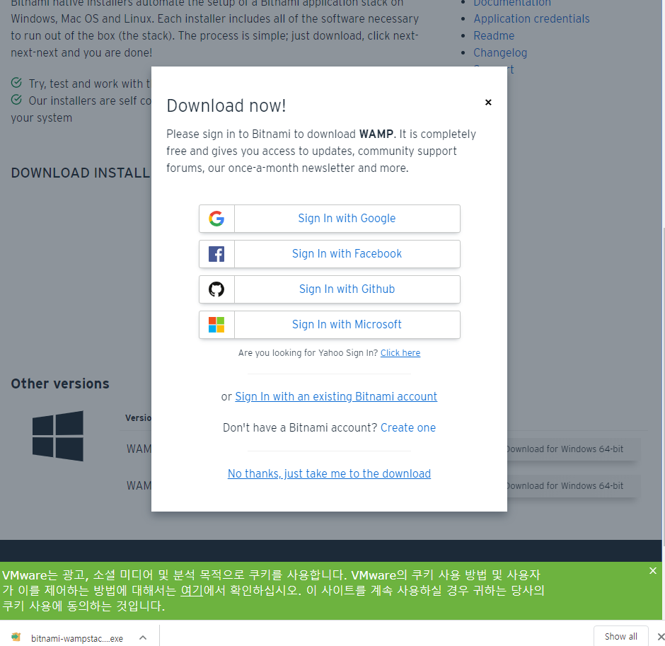 https://bitnami.com/stack/wamp여기서 다운 받으시면 됩니다.