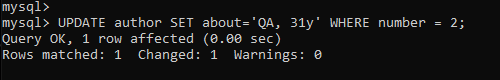 보시다시피 update 한번으로 table_number 2번과 5번 둘 다 about이 변경된걸 확인 할 수 있습니다.