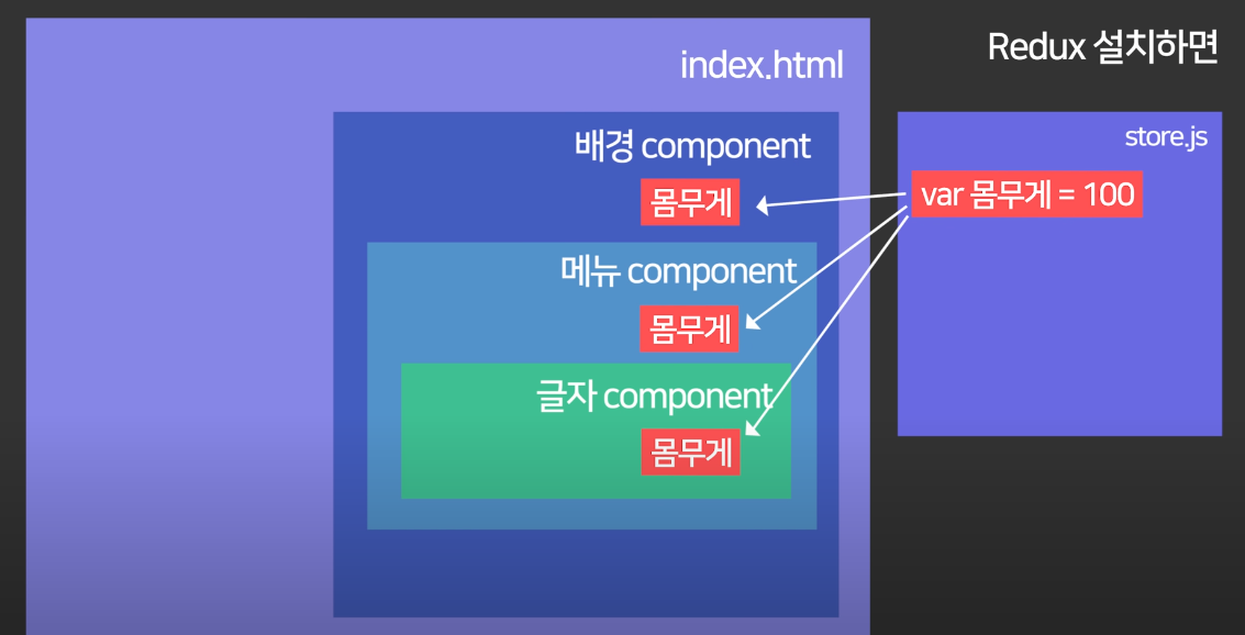 store : 변수들을 저장하고 있는 저장소입니다 -> 단 1개만 생성가능