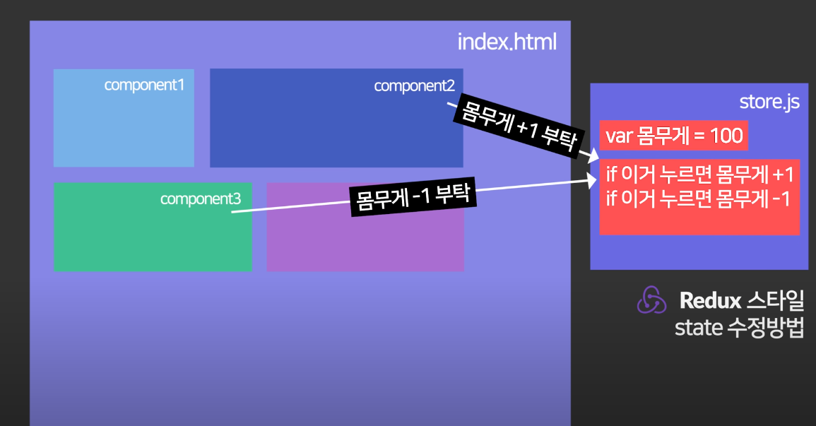 컴포넌트가 많고, 각자 컴포넌트에서 state를 불러서 수정을 진행을 할때,
